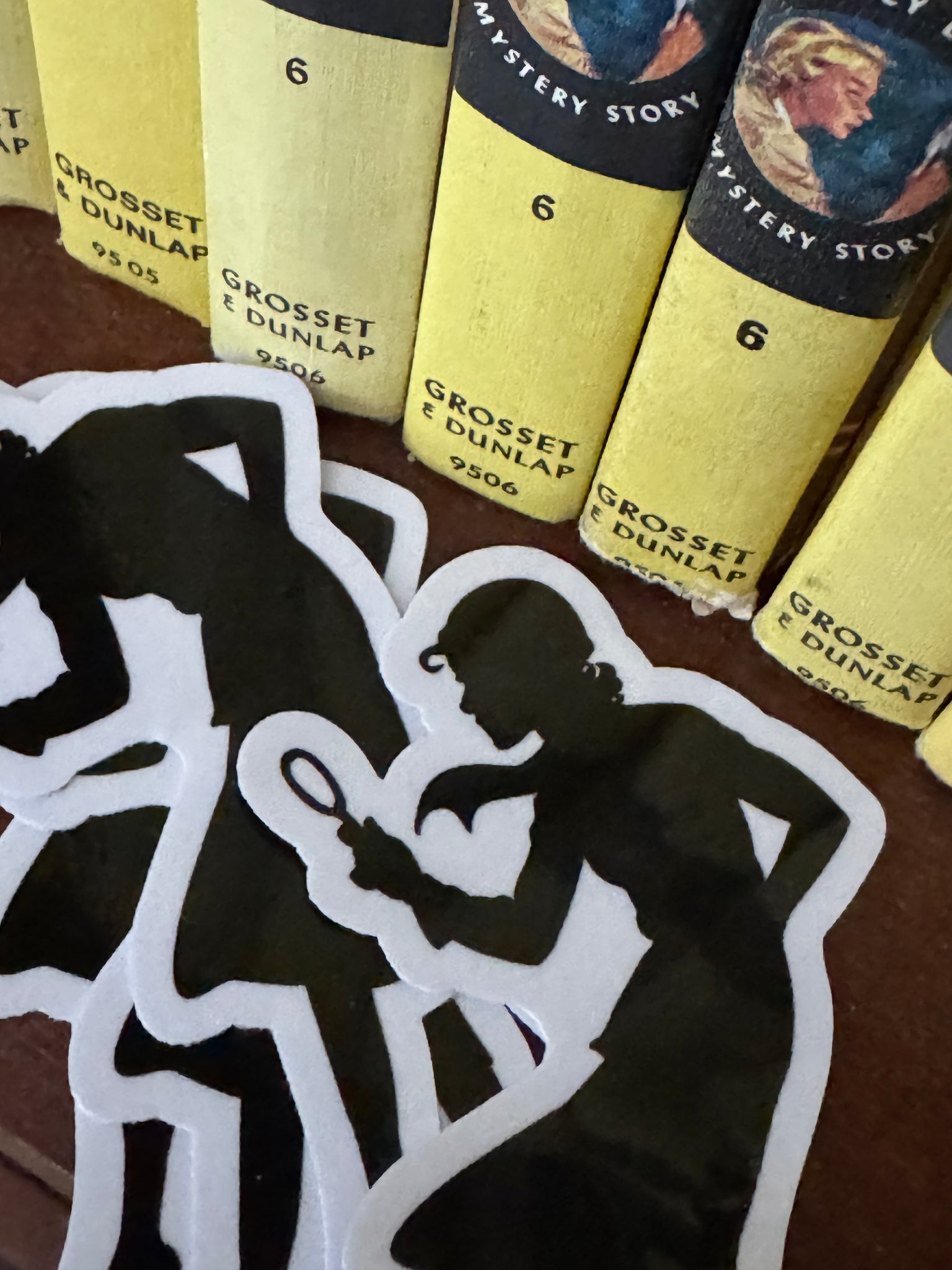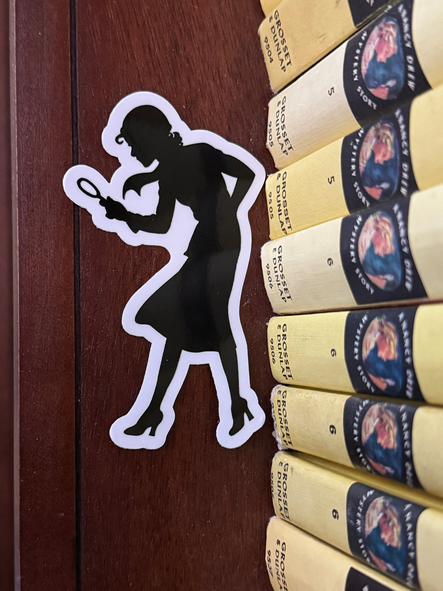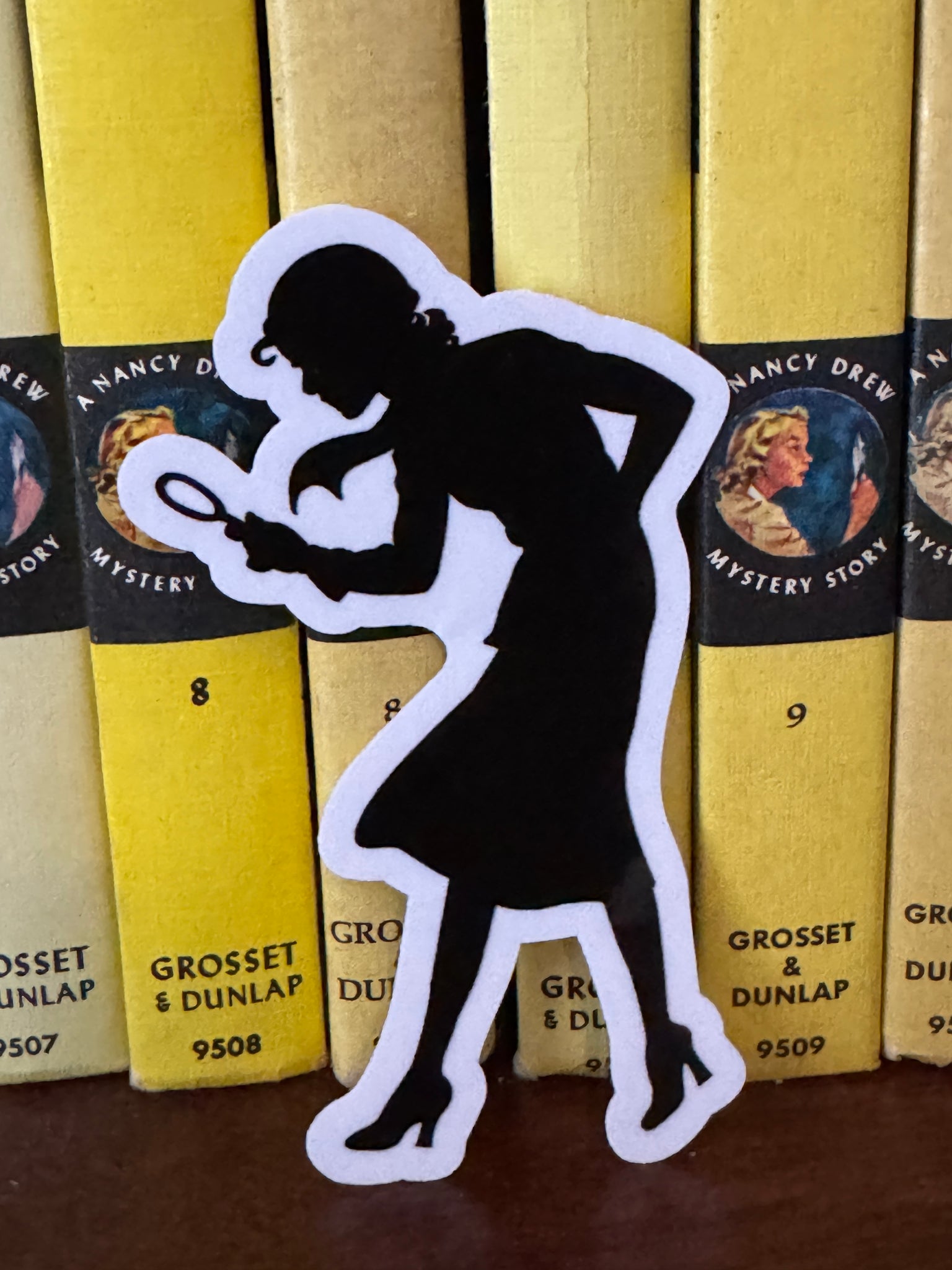 Nancy Drew's infamous silhouette becomes a large sticker! No one's life or collection is complete without having a sleuthy sticker. Great for decorating and scrapbooking. Size: 4" x 2 1/2" approx. Materials: Paper, adhesive. Those ordering just the sticker only, we will likely be able to refund some of your shipping!